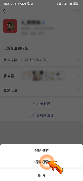 3、最后点击下方弹出窗口中的“语音通话”选项即可。