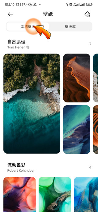4、最后点击壁纸页面上方的“系统壁纸”选项即可查看系统相册。