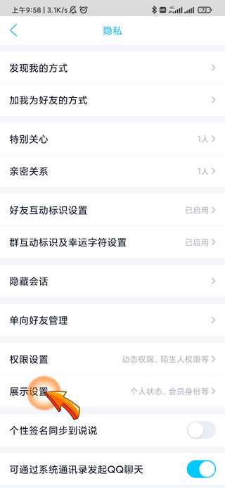 隐藏微信正在输入状态需要在绑定的qq号码中进行隐藏,首先打开QQAPP,点击左上角的“头像”图标,然后点击“设置”图标,之后点击设置页面中的“隐私”选项,再点击页面下方的“展示设置”选项,最后点击关闭“我的输入状态”即可。