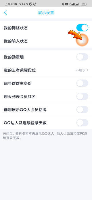 5、最后点击打开“我的输入状态”右侧的开关按钮即可。