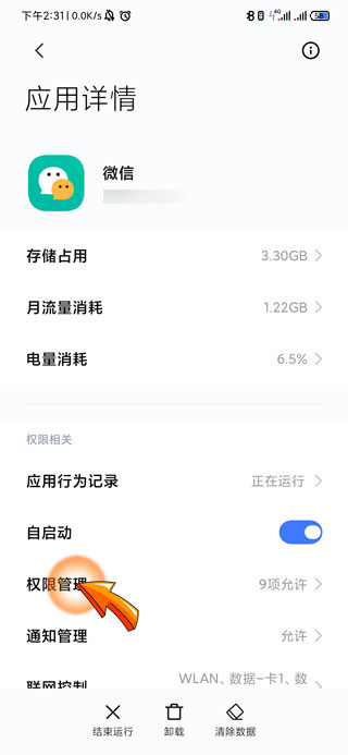 禁止微信读取手机隐藏相册需要打开桌面上的“手机管家”图标,点击“应用管理”选项,然后找到并点击“微信”图标,之后点击页面下方的“权限管理”选项,再点击页面顶部的“读写手机储存”选项,最后点击关闭“访问相册”权限即可。