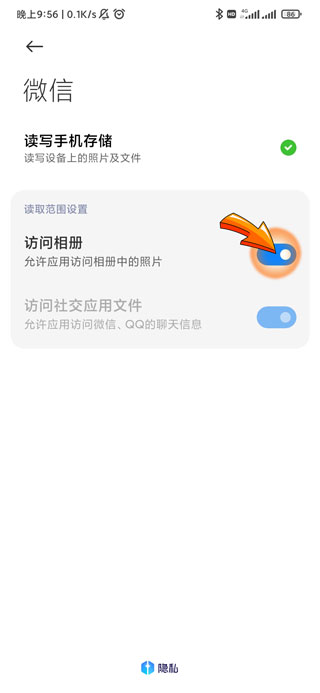 6、最后点击关闭“访问相册”右侧的开关按钮即可。