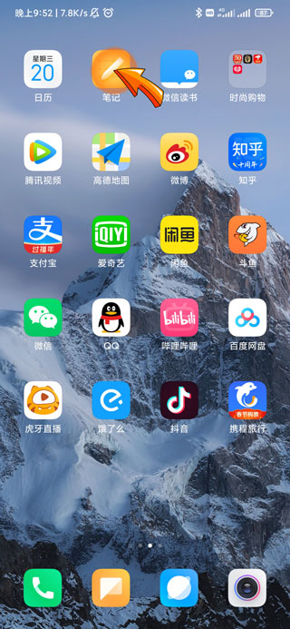 1、备忘录添加录音首先需要点击打开桌面上的“笔记”图标。