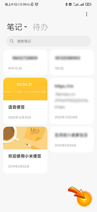 备忘录加录音首先需要打开桌面上的“笔记”图标,进入笔记页面后,点击右下角的“加号”图标,最后点击输入法页面左上角的“录音”图标即可开始录音,同时保存在笔记页面中。