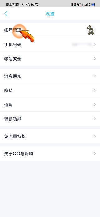 3、进入设置页面后,点击页面顶部的“账号管理”选项。