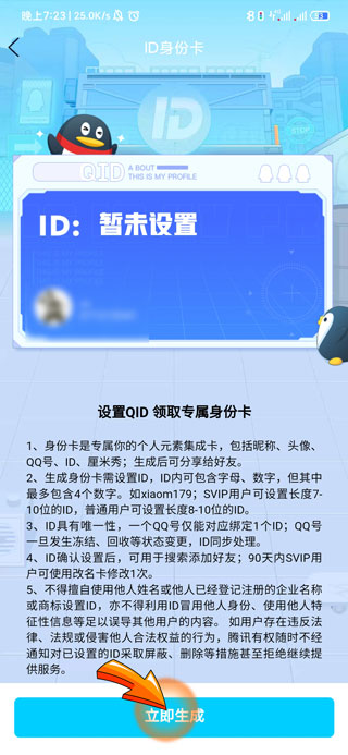 5、最后点击页面底部的“立即生成”选项即可生成qq身份卡。