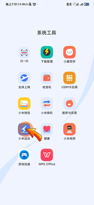 1、手机连接小米手环首先需要点击打开桌面上的“小米运动”选项。
