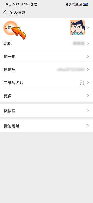 3、进入个人信息页面后,点击页面顶部的“头像”图标。