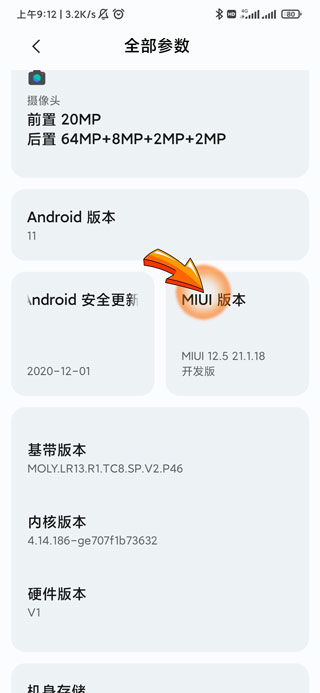 4、最后连续点击“MIUI版本”图标即可开启开发者选项。