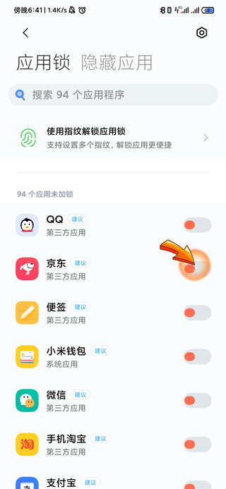 3、然后点击应用设置页面底部的“应用锁”选项。