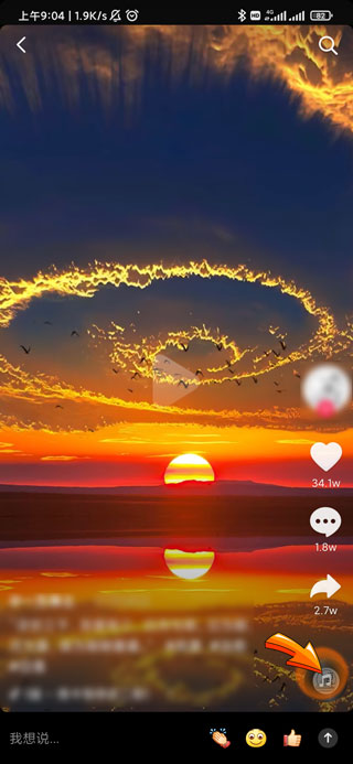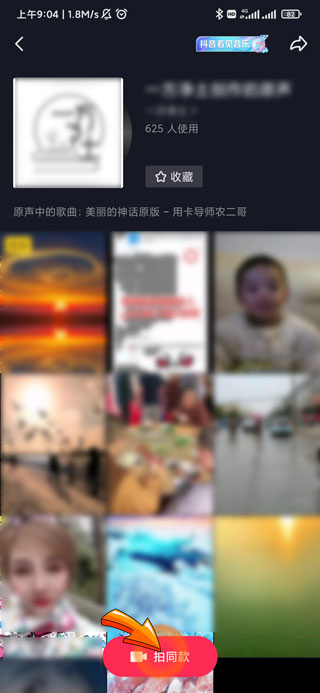 2、进入抖音页面后,找到需要拍摄的同款视频,点击视频右下角的“音乐”图标。