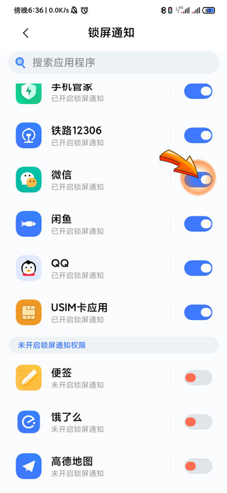 4、最后找到微信图标,并点击开启右侧的“开关”按钮即可。