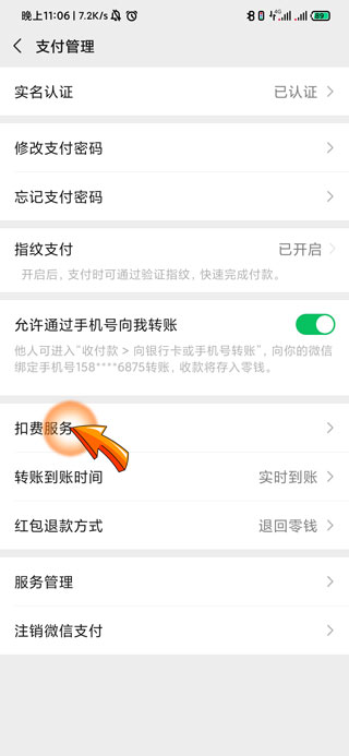 4、最后点击支付管理页面中的“扣费服务”选项即可。