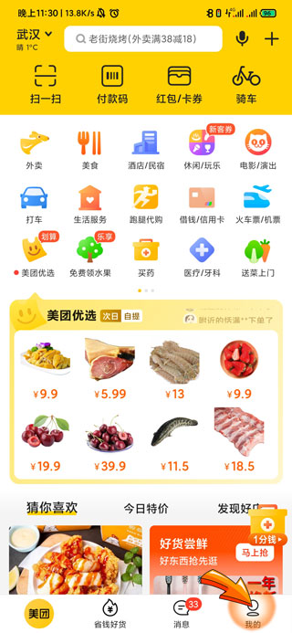 1、美团查看收货地址首先需要打开美团APP,点击首页右下角“我的”图标。