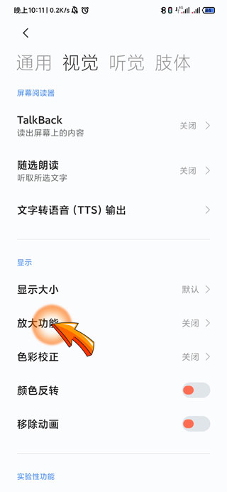 6、在放大功能页面中,点击上方的“点击屏幕两次进行放大”选项。