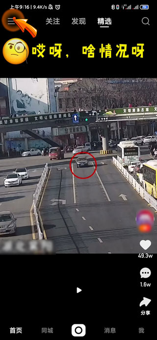 1、快手查看草稿箱首先需要打开快手APP,点击首页左上角的“三横”符号。