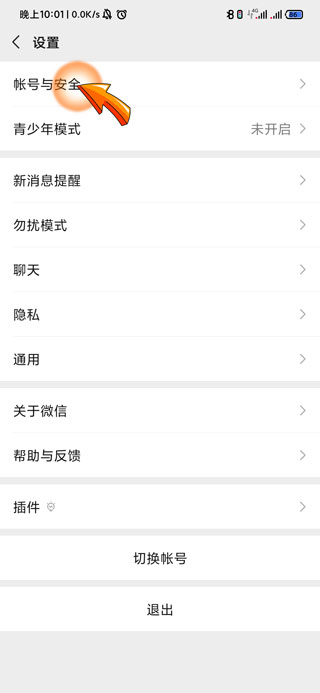 3、进入设置页面后,点击顶部的“账户与安全”选项。