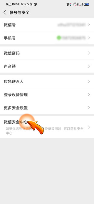 4、之后点击页面底部的“微信安全中心”选项。