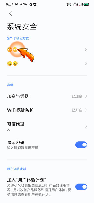 4、之后点击sim卡锁定方式下方的“sim卡”图标。