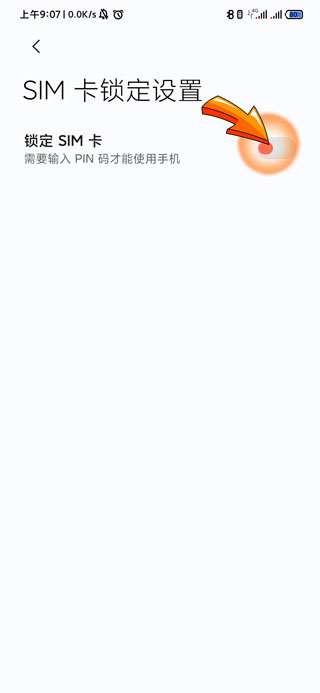 5、最后点击锁定sim卡右侧的“开关”按钮,将其开启即可。