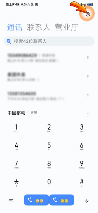 2、进入拨打电话页面后,点击右上角的“齿轮”图标。