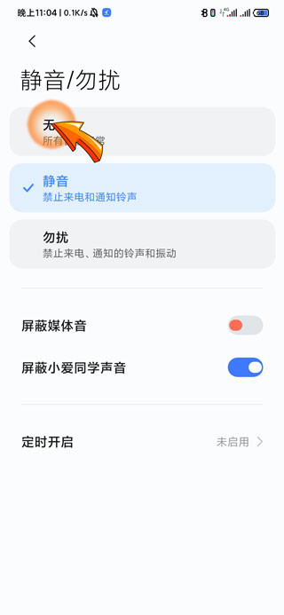 4、最后点击静音/勿扰下方的“无”选项即可。