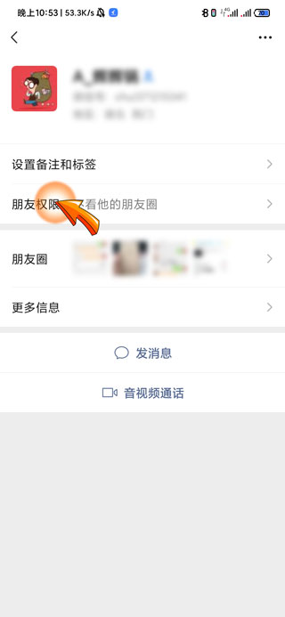 2、然后点击对方主页中的“朋友权限”选项。
