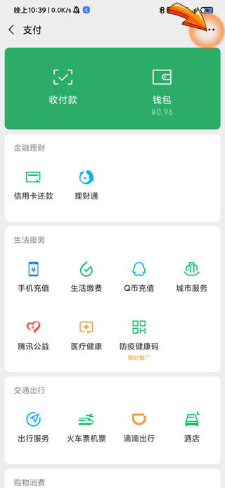 3、进入支付页面后,点击页面右上角的“三点”符号图标。