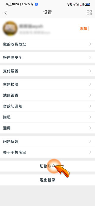 3、最后点击设置页面底部的“切换账户”选项,即可进行淘宝账户切换。