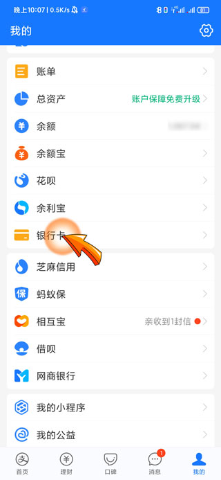 1、支付宝绑定银行卡首先需要打开支付宝APP,点击首页右下角的“我的”图标。