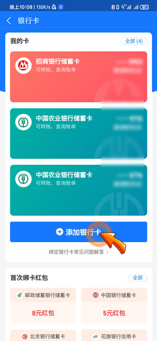 3、最后点击银行卡页面中的“添加银行卡”选项即可。
