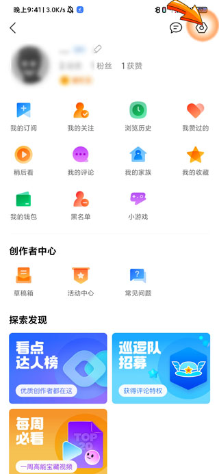3、然后点击个人页面右上角的“设置”齿轮图标。