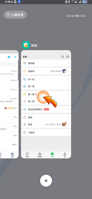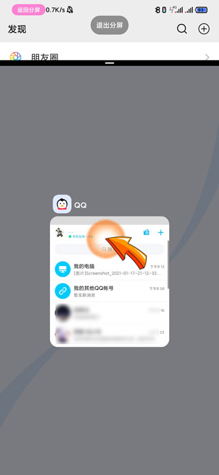 4、此时该应用会弹至页面上方,点击第二个需要分屏的“应用”图标即可完成分屏。