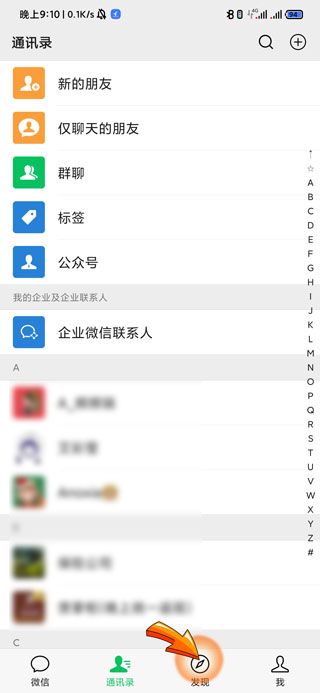 1、微信发布朋友圈首先需要打开微信APP,点击页面底部的“发现”图标选项。