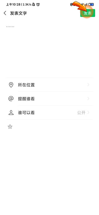 4、编辑好需要发布的朋友圈内容后,点击右上角的“发表”选项即可。