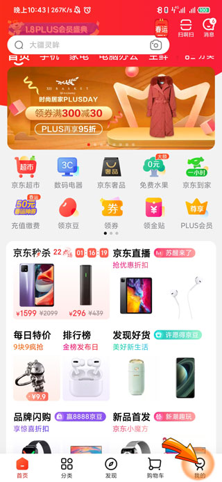 1、京东plus会员开通首先需要打开京东APP,点击首页右下角的“我的”图标。