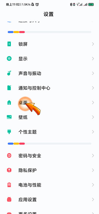 2、然后在设置页面中找到并点击“桌面”选项。