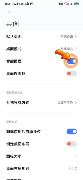 小米步数放到锁屏需要打开手机的智能助理功能,首先点击桌面上的“设置”图标,进入设置页面后,点击“桌面”选项,最后再点击“智能助理”右侧的开关按钮,将其打开即可。