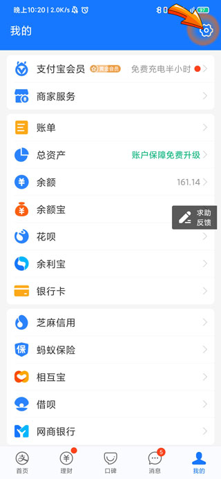 2、进入我的页面后点击页面右上角的“设置”齿轮图标。
