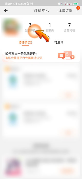 3、进入我的评价页面后,点击页面上方的“全部评价”即可。