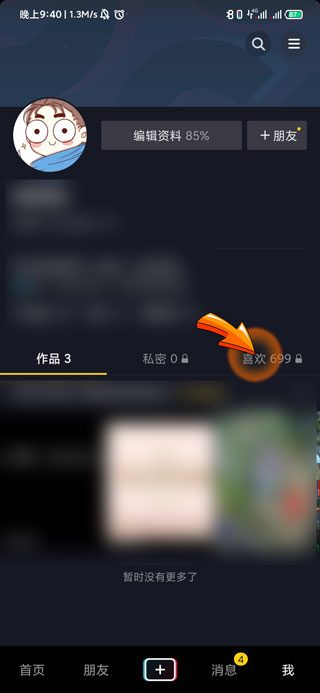 2、进入我的页面后,点击页面中部右侧的“喜欢”选项。