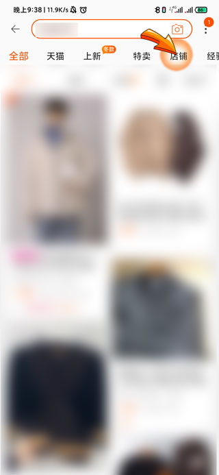 3、进入搜索后的页面后,点击搜索栏右下方的“店铺”选项即可。