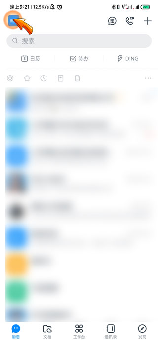 1、钉钉注销手机号首先需要打开钉钉APP,点击首页左上角的蓝色“方块”图标。