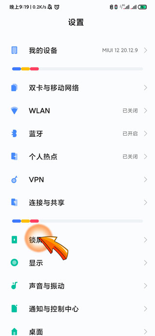 2、进入设置页面后,找到并点击“锁屏”选项。
