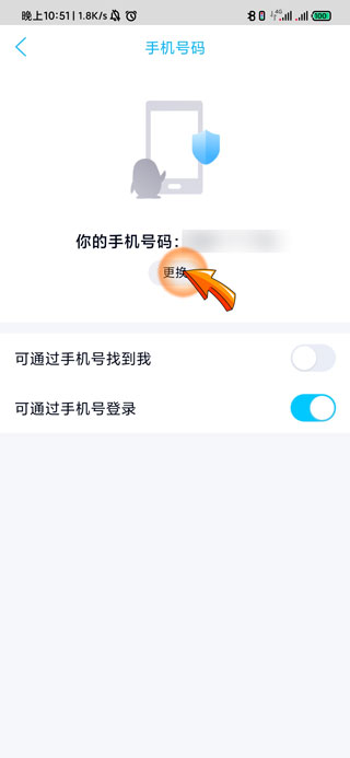 4、最后点击手机号码下方的“更换”选项即可进行更换手机号。