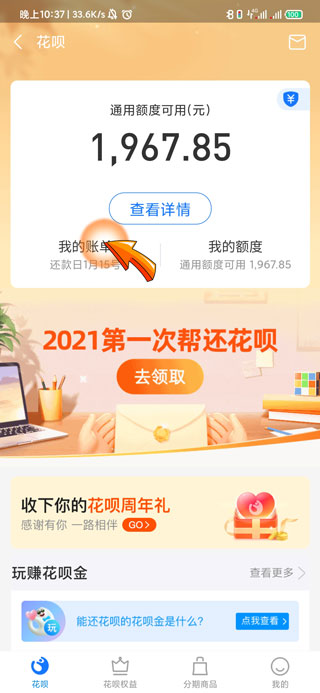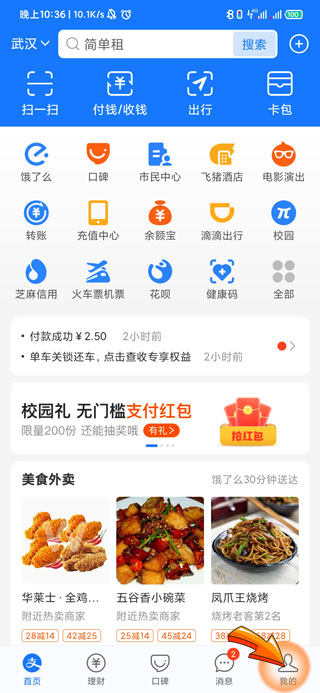 1、花呗查看全年账单首先需要打开支付宝APP,点击首页右下角的“我的”图标。
