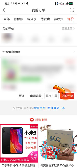 3、找到需要评价的订单后,点击订单右下角的“立即评价”选项即可。