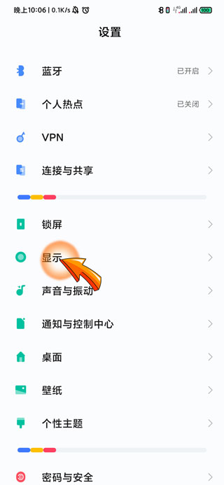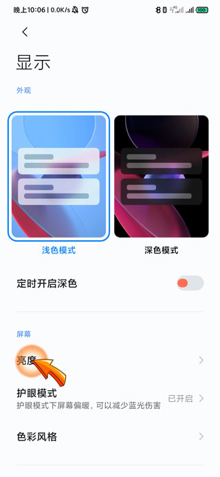 手机开启自动调节亮度后会更加耗电,关闭自动亮度调节需要点击桌面上的“设置”图标,然后点击“显示”选项,再点击显示页面中的“亮度”选项,最后将“自动调整亮度”右侧的开关关闭即可。