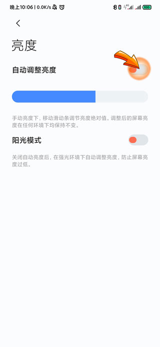 4、最后点击关闭“自动调整亮度”右侧的开关按钮即可。