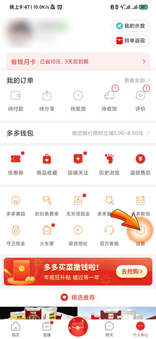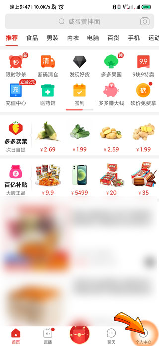 1、拼多多没有我的步数首先需要打开拼多多APP,点击首页右下角“个人中心”图标。